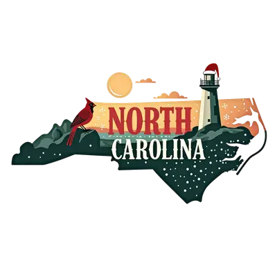 Festive North Carolina Christmas DTF Transfer - Lighthouse & Cardinal