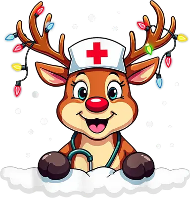 Festive Nurse Reindeer DTF Transfer | Christmas Lights Ready to Press