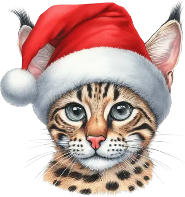 Festive Ocelot Cat in Santa Hat DTF Transfer - Christmas Ready to Press