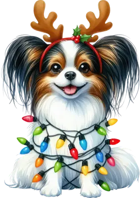 Festive Papillon Dog Christmas Lights & Antlers DTF Transfer
