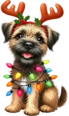 Festive Puppy Christmas Lights DTF Transfer | Reindeer Dog Iron On