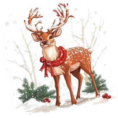 Festive Reindeer with Red Scarf DTF Transfer | Snowy Christmas Deer