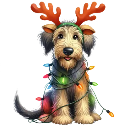 Festive Shaggy Dog Reindeer Antlers Christmas Lights DTF Transfer