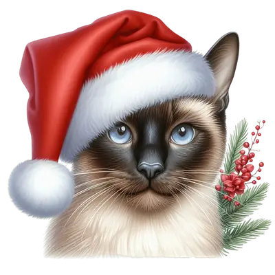 Festive Siamese Cat in Santa Hat DTF Transfer | Christmas Holiday Design