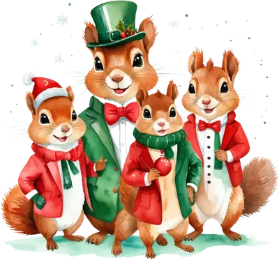 Festive Squirrel Family Christmas DTF Transfer | Holiday Animal Ready-to-Press