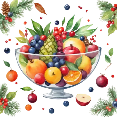 Festive Watercolor Christmas Fruit Bowl DTF Transfer Ready to Press