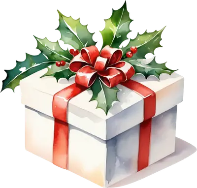 Festive Watercolor Christmas Gift Box Holly Berries DTF Transfer