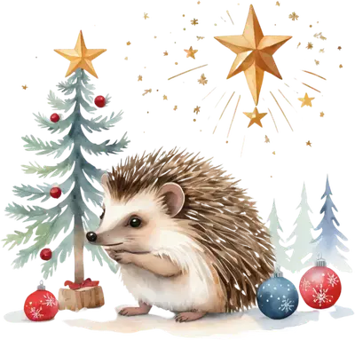 Festive Watercolor Christmas Hedgehog DTF Transfer with Stars