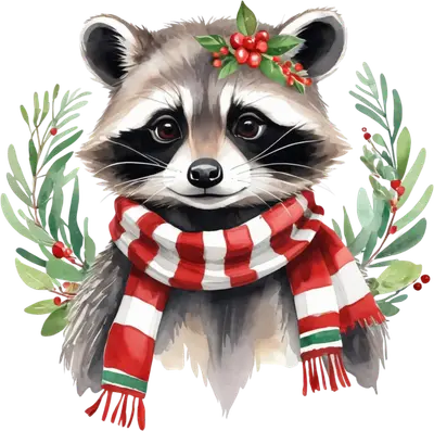 Festive Watercolor Christmas Raccoon DTF Transfer