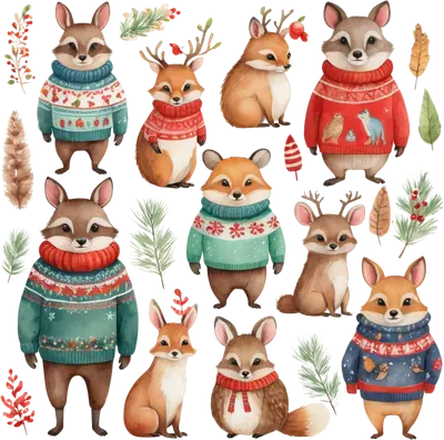 Festive Winter Critters Ugly Sweater Ready to Press DTF Transfer