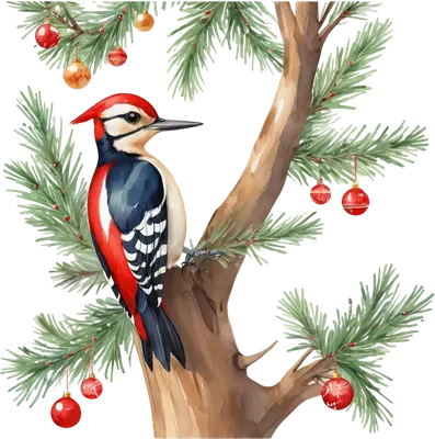 Festive Woodpecker Christmas Tree DTF Transfer Watercolor Design