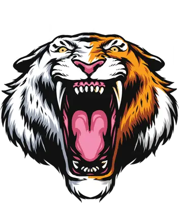 Fierce Roaring Tiger Head DTF Transfer | White & Orange Stripes