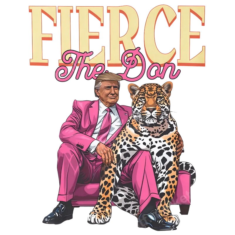 See allThis striking DTF transfer features a stylized depiction of Donald Trump in a vibrant pink suit, sitting confidently alongside a fierce leopard. The bold text "FIERCE" and "The Don" above them amplify the powerful and distinctive vibe of this ready to press design. It's an eye-catching graphic that blends political pop culture with a touch of unexpected humor and style, perfect for making a memorable statement. This unique apparel transfer is ideal for supporters, political enthusiasts, or anyone who appreciates bold, meme-inspired graphics. It makes an excellent conversation starter for rallies, political events, or casual wear. Surprise a friend or family member with a custom t-shirt or hoodie featuring this one-of-a-kind design. It's a fantastic way to express personality and show off a bit of edgy political flair. Applying this heat press design is incredibly simple. Our premium direct to film transfer works beautifully on a wide range of fabrics, including cotton, polyester, and various blends. For best results, use a heat press at 280-300°F for 6-10 seconds with medium pressure, then perform an instant peel. If you don't have a heat press, a household iron can also be used with careful application. Best of all, there's no tedious weeding required, making customization quick and easy. Experience exceptional quality with our professional-grade heat transfer. These iron on transfers boast vibrant, true-to-life colors that pop on any garment. The design is highly durable, crack-resistant, and features a soft, flexible feel that won't weigh down your fabric. Made with strong adhesive on specialized DTF film, this ready to press transfer ensures your customized items will look fantastic and last for many washes, maintaining their intricate detail and bold impact.