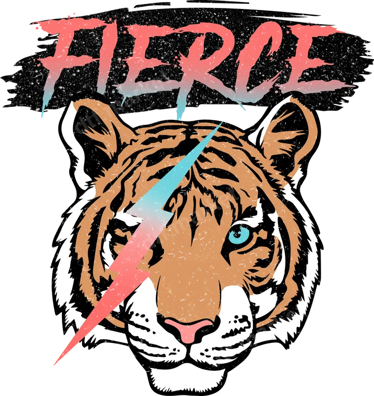 See allThis striking DTF transfer features a powerful tiger head design, exuding a fierce and untamed spirit. Adorned with a vibrant, distressed "FIERCE" text in a retro gradient and a matching lightning bolt cutting across its face, this design captures an edgy, vintage aesthetic. It's a bold statement piece, professionally printed and ready to press onto your favorite apparel. Ideal for anyone who loves strong animal imagery, retro styles, or seeks empowering fashion. This ready to press transfer is perfect for personalizing streetwear, creating unique gifts, or adding a touch of bold personality to your wardrobe. It's great for concerts, festivals, casual wear, or as a statement piece for animal lovers and those with a rebellious streak. Our high-quality heat press transfers are incredibly versatile, adhering beautifully to a wide range of fabrics including cotton, polyester, and various blends. For best results, apply with a heat press at 300-325°F for 15 seconds with medium pressure. It can also be applied with a household iron, following included instructions. Enjoy the convenience of an iron on decal with no weeding required, making custom apparel creation simple. Experience superior quality with our durable direct to film transfers. Each apparel transfer boasts vibrant, crisp colors and intricate details that are soft to the touch, highly crack-resistant, and built to last wash after wash. Crafted from professional-grade DTF film with a strong adhesive, this t-shirt transfer ensures a long-lasting, professional finish on all your customized items.