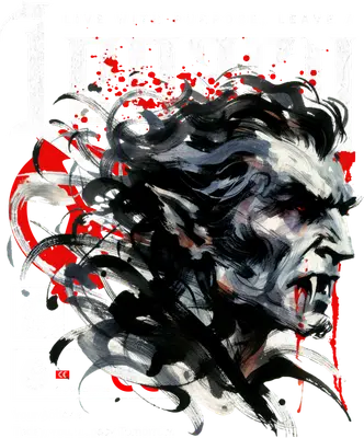 Fierce Vampire Ink Wash DTF Transfer - Gothic Horror Heat Press Design