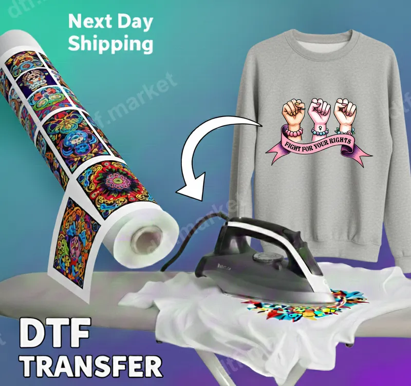 See allMake a powerful statement with our "Fight For Your Rights" DTF transfer. This vibrant design features three diverse raised fists, symbolizing unity and strength, anchored by a bold pink ribbon banner proclaiming "FIGHT FOR YOUR RIGHTS." It’s an ideal ready to press transfer for anyone looking to express their advocacy and stand up for what they believe in. This impactful heat press design is perfect for feminists, activists, and anyone who champions social justice. Wear it to protests, rallies, community events, or simply as an everyday reminder of the ongoing fight for equality. It also makes a thoughtful and empowering gift for friends, family, or colleagues who inspire you with their courage and conviction. Applying this direct to film transfer is incredibly easy, making it accessible for both experienced crafters and beginners. Our high-quality heat transfer works beautifully on a wide range of materials, including cotton, polyester, and various fabric blends. Simply use a heat press at 300-325°F for 15 seconds with medium pressure, or apply with a household iron. Best of all, there’s no weeding required for this iron on decal, saving you time and effort. Experience superior print quality with our professional DTF film. Each apparel transfer boasts incredibly vibrant colors that pop, offering excellent stretch and rebound to prevent cracking and peeling over time. The soft-touch finish integrates seamlessly with your fabric, ensuring a comfortable wear that lasts wash after wash. Transform your garments with this durable and visually stunning t-shirt transfer.