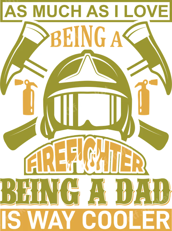 See allThis impactful DTF transfer proudly declares, "As Much As I Love Being A FIREFIGHTER, Being A DAD IS WAY COOLER." The design features classic firefighter iconography, including a bold helmet, crossed axes, and fire extinguishers, all rendered in an earthy olive green and warm orange palette. It’s a perfect ready to press transfer for any proud father who dedicates his life to both service and family. Ideal for real-life heroes, this heat press transfer is a fantastic way to show appreciation for firefighter fathers on Father's Day, birthdays, or just because. It makes an excellent gift for dads, husbands, or grandfathers in the fire service who cherish their role as a parent above all else. Customize t-shirts, sweatshirts, or bags for family events, fire department gatherings, or simply for everyday wear to celebrate their dual dedication. Applying this durable heat press design is straightforward. It works beautifully on a wide variety of materials, including cotton, polyester, and their blends. For best results, use a heat press at 300-325°F for 15 seconds with medium pressure. Even a household iron can achieve great results by pressing firmly and evenly. Forget tedious weeding; this iron on transfer comes ready to be pressed directly onto your chosen garment. Crafted using professional-grade DTF film, this direct to film transfer boasts vibrant, crisp colors and exceptional detail that stand out. Our apparel transfers are designed for superior durability, resisting cracks and peels even after multiple washes. The soft-touch finish ensures comfort, making it a high-quality, long-lasting iron on decal for any garment, allowing firefighter dads to wear their pride for years to come.