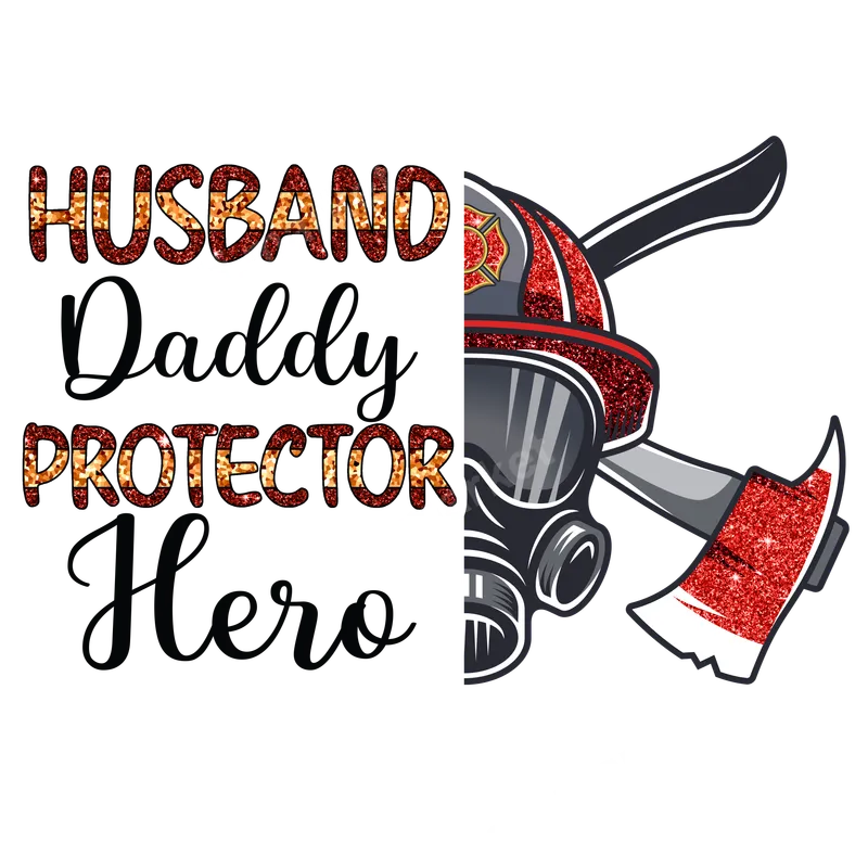 Firefighter Dad Husband Protector Hero DTF Transfer Glitter Design