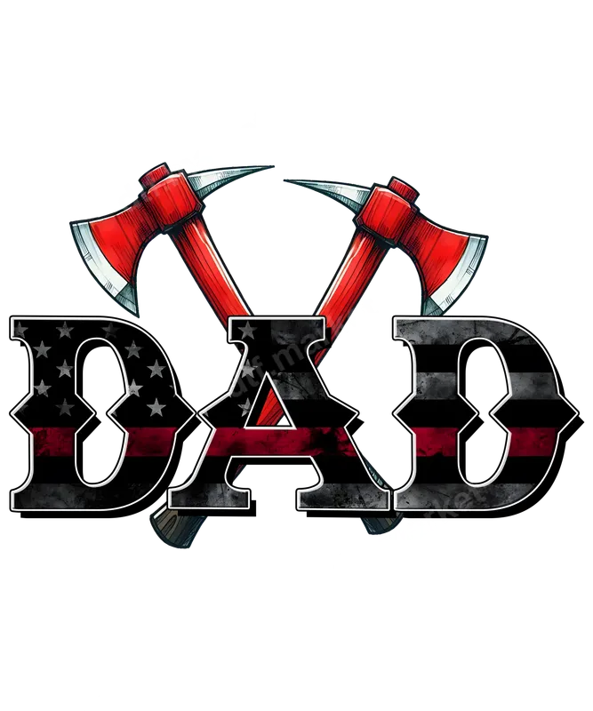 See allHonor the brave dads in your life with this striking Firefighter Dad DTF transfer. This design features the word "DAD" rendered in a distressed American flag pattern, prominently displaying the Thin Red Line to symbolize support for firefighters. Above the text, two classic red firefighter axes are crossed, adding an authentic and powerful touch. This ready to press transfer is perfect for creating custom apparel that speaks volumes about courage and family pride. This robust graphic is ideal for firefighter fathers, their proud families, and anyone who wants to celebrate the heroism of first responders. It makes an exceptional gift for Father's Day, birthdays, Christmas, or as a thoughtful gesture for a fire academy graduation. Use this design to create personalized items for family reunions, charity events, or simply as a daily display of admiration for a dedicated firefighter dad. Our professional-grade ready to press transfer is designed for easy application on a wide range of materials, including cotton, polyester, and various blends. Achieve a flawless finish using a heat press set at 300-325°F for 15 seconds with medium pressure. For those without a heat press, a household iron can also be used with careful application. Unlike vinyl, there's no tedious weeding required – simply press and peel to reveal your vibrant new iron on decal. Experience superior quality with our DTF transfers. These heat transfers boast incredibly vibrant colors, exceptional durability, and resistance to cracking or peeling, ensuring your design looks fantastic wash after wash. The soft-touch feel of the printed film integrates seamlessly with your fabric, providing a professional finish that rivals screen printing. Create stunning, long-lasting apparel transfers with ease and confidence.