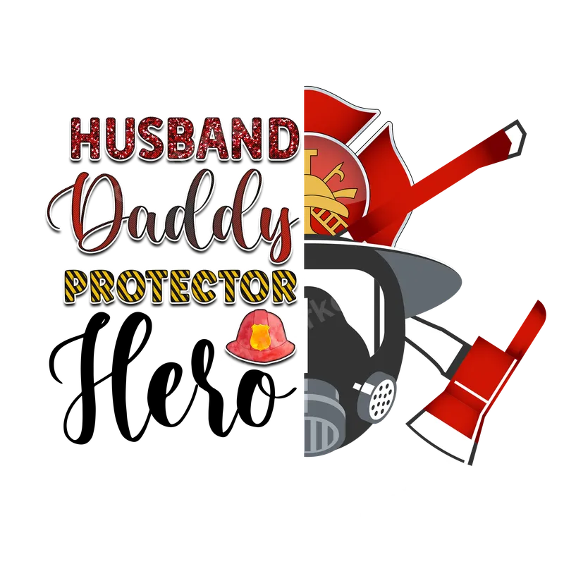Firefighter Husband Daddy Protector Hero DTF Transfer Design