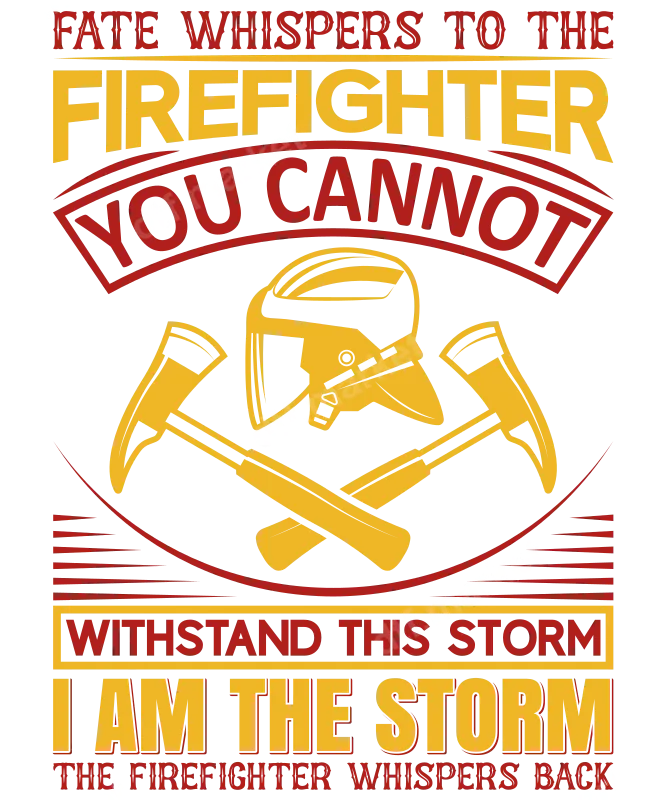 See allThis compelling DTF transfer features an empowering message for firefighters: "FATE WHISPERS TO THE FIREFIGHTER YOU CANNOT WITHSTAND THIS STORM I AM THE STORM THE FIREFIGHTER WHISPERS BACK." The bold text in red and yellow is complemented by a striking graphic of a firefighter helmet and crossed axes, symbolizing courage and resilience. This high-quality, ready to press design is perfect for honoring the heroes in your life. Ideal for active firefighters, retired veterans, their families, and supporters, this firefighter DTF transfer makes a thoughtful gift for birthdays, Father's Day, or any occasion to celebrate their dedication. It's an excellent way to show appreciation for their bravery and sacrifice, allowing you to create personalized apparel for events, firehouse gear, or everyday wear. Our durable heat press transfers are incredibly versatile, adhering seamlessly to a wide range of fabrics including cotton, polyester, and various blends. For professional application, use a heat press at 300-325°F for 15 seconds with medium pressure. These direct to film transfers require no weeding, making customization quick and easy. Experience superior quality with our premium DTF transfers. Each iron on transfer boasts vibrant colors that pop, exceptional wash durability, and crack-resistant flexibility for long-lasting wear. The professional-grade DTF film ensures a soft touch and strong adhesive, providing a flawless finish that feels integrated into the fabric, not just sitting on top.
