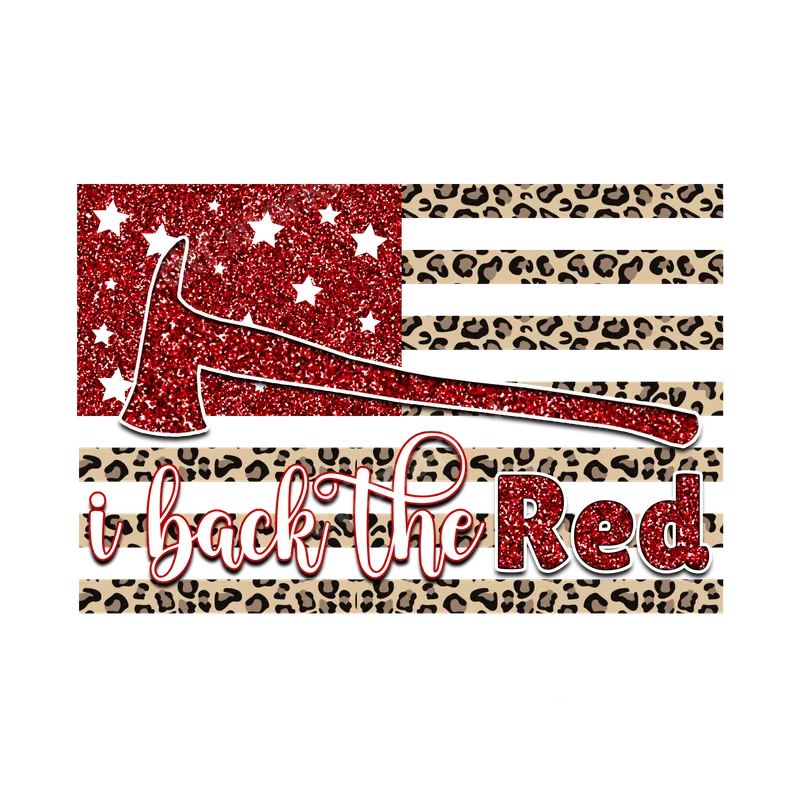 Firefighter I Back The Red Glitter Leopard Flag DTF Transfer Ready to Press