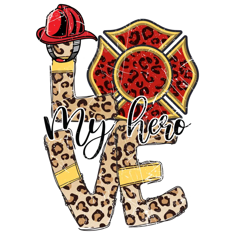Firefighter My Hero Leopard Print Distressed DTF Transfer