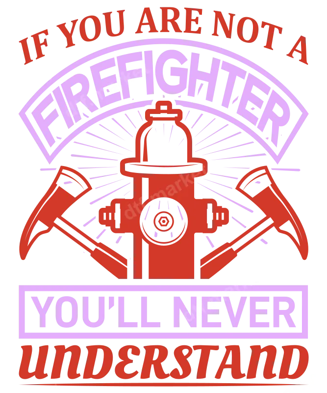 See allThis powerful DTF transfer proudly displays the sentiment "IF YOU ARE NOT A FIREFIGHTER YOU'LL NEVER UNDERSTAND," centered around a classic fire hydrant flanked by two crossed fire axes. The design features bold red and light purple lettering, making a strong statement about the unique dedication and experience of firefighters. It's a high-quality, ready to press design that brings immediate impact to any garment. This design is perfect for active firefighters, retired veterans of the fire service, fire academy graduates, and their proud families and supporters. It makes an excellent gift for Firefighter Appreciation Day, graduations, retirements, birthdays, or any occasion to honor these brave heroes. Show your solidarity and respect for the challenging and rewarding profession of firefighting. Our DTF transfers are incredibly versatile and can be applied to a wide range of fabrics, including cotton, polyester, and various blends. Achieve professional results with a heat press at 300-325°F for 15 seconds with medium pressure, or use a household iron for smaller applications. These heat press ready designs require no weeding, saving you time and effort on every project. It's a hassle-free iron on transfer solution. Experience vibrant, long-lasting results with our premium direct to film transfer technology. Each t-shirt transfer is crafted using professional DTF film with a strong adhesive, ensuring your design resists cracking, peeling, and fading over time. The finished product offers a soft hand feel, making it comfortable to wear and durable enough to withstand countless washes.