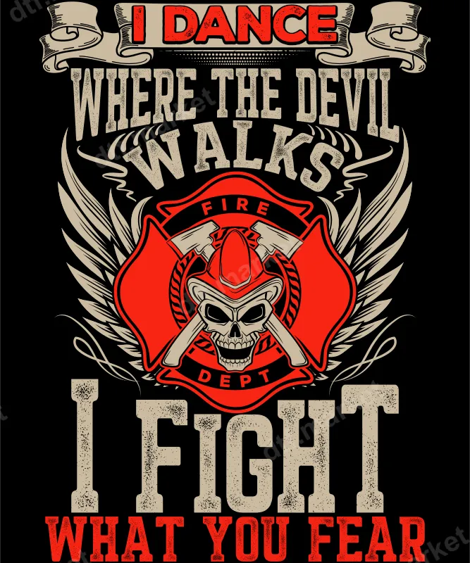 See allUnleash your inner hero with this powerful 'I Dance Where The Devil Walks, I Fight What You Fear' DTF transfer. This striking design features a central red Maltese cross, symbolizing courage and sacrifice, adorned with a skull wearing a firefighter helmet and crossed axes, flanked by detailed wings. The bold, distressed typography adds an edgy, vintage feel, perfectly conveying the fearless spirit of firefighters. This ready to press transfer is ideal for creating impactful apparel that honors the bravery of our first responders. This unique design is specifically crafted for firefighters, their proud family members, and passionate supporters of emergency services. It's an excellent choice for showing solidarity, commemorating service, or celebrating the strength required in such a demanding profession. Perfect for firefighter appreciation events, casual wear, or as a meaningful gift for a loved one in the fire department, this iron on transfer allows you to personalize t-shirts, sweatshirts, and gear with a message of unwavering resolve. Applying this professional-grade DTF transfer is simple and efficient. It can be easily applied with a heat press at 300-325°F for 15 seconds with medium pressure, or with a household iron (follow specific instructions for iron-on transfers). Designed for versatility, it adheres beautifully to a wide range of fabrics including cotton, polyester, and their blends, making it perfect for almost any garment. Best of all, there's no tedious weeding required, saving you time and effort. Experience superior quality with our direct to film transfers. Each design is printed with vibrant, long-lasting colors that resist cracking and fading, ensuring your custom creation stays sharp and impressive wash after wash. The soft-touch feel of the heat transfer design ensures maximum comfort, unlike bulky vinyl. Crafted using professional DTF film with a strong, durable adhesive, this apparel transfer promises a high-quality finish for all your customization projects.