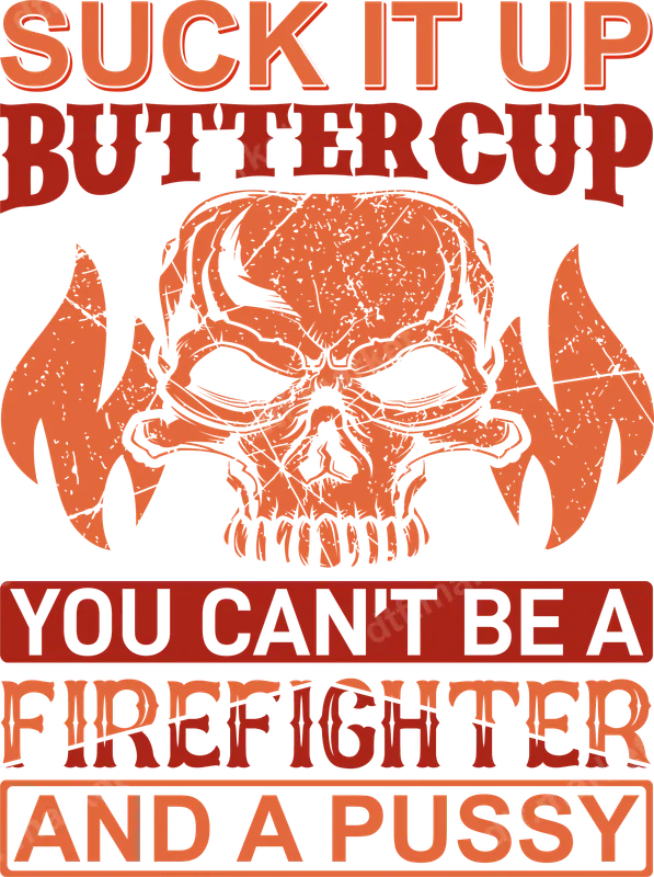 See allUnleash your inner toughness with this bold 'Suck It Up Buttercup' firefighter DTF transfer. Featuring a fierce skull engulfed in flames and the no-nonsense text, 'You Can't Be A Firefighter And A Pussy', this ready to press design is perfect for those who embody grit and courage. The distressed graphic style adds an edgy, vintage feel, making it a standout apparel transfer for anyone in the fire service or who admires their dedication. This explicit and humorous design is an ideal heat press transfer for active firefighters, retired veterans, or dedicated fire academy recruits. It makes a fantastic gift for birthdays, Father's Day, or any occasion celebrating the brave men and women of the fire department. Friends and family looking for a unique iron on decal to support their loved ones in uniform will find this design both fitting and amusing. It’s also great for anyone with a bold sense of humor who isn't afraid to make a statement. Applying this DTF transfer is incredibly straightforward, transforming ordinary garments into personalized statements. It works flawlessly on a wide variety of materials, including 100% cotton, polyester, cotton-poly blends, and even tri-blends. For best results, use a heat press at 300-325°F for 15 seconds with medium pressure, then peel cold. If you're using a household iron, ensure even, firm pressure. No tedious weeding or layering required, making it a quick and easy iron on for professional and home users alike. Each heat press ready design is printed on professional-grade DTF film, ensuring vibrant colors and exceptional durability. Our transfers are crack-resistant, wash-fast, and boast a soft-to-touch feel once applied, seamlessly integrating with your garment. The strong adhesive guarantees a long-lasting print that will withstand countless washes, maintaining its original look and feel. Get ready to create custom apparel that truly stands out with superior quality and an unforgettable message.