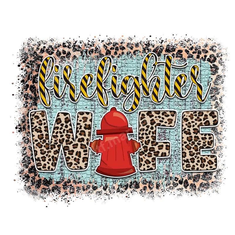 Firefighter Wife Leopard DTF Transfer | Fire Hydrant Heat Press Design