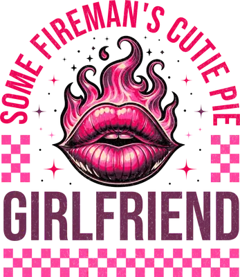Fireman's Cutie Pie Girlfriend DTF Transfer Pink Lips Flames