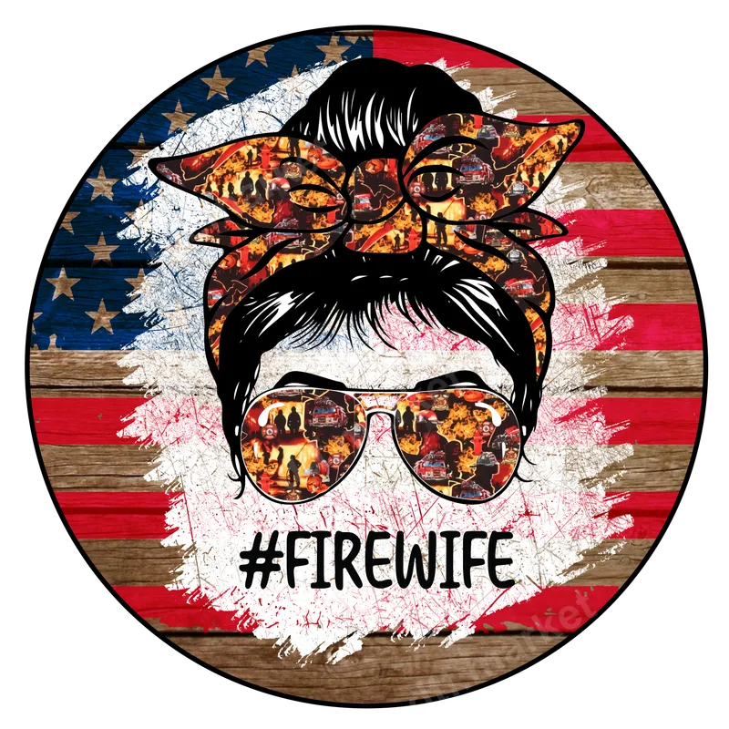Firewife Messy Bun DTF Transfer | Patriotic Firefighter Wife Ready to Press