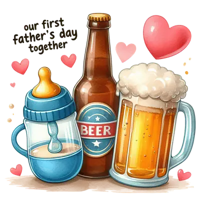 First Father's Day DTF Transfer | New Dad Beer & Baby Bottle Design