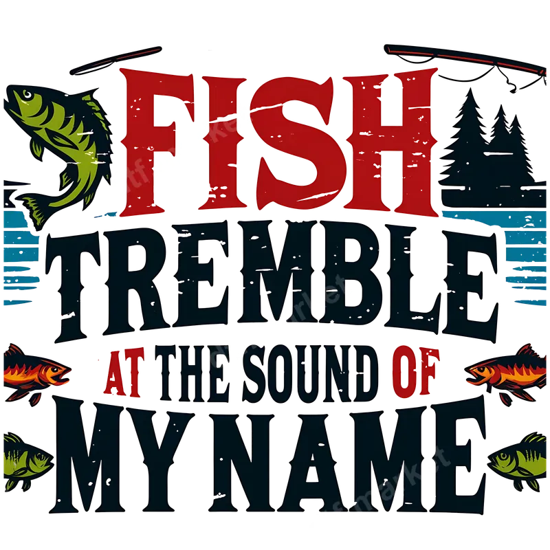 See allShow off your passion for fishing with this hilarious and bold "FISH TREMBLE AT THE SOUND OF MY NAME" DTF transfer. Featuring a distressed red and blue font, dynamic jumping bass, subtle fishing rods, and pine tree silhouettes, this design captures the essence of a proud angler. It's a high-quality, ready to press direct to film transfer that brings instant personality to any garment. This witty design is perfect for fishing enthusiasts, dedicated dads, grandpas, and anyone who loves the great outdoors. It makes an excellent gift for Father's Day, birthdays, fishing trips, or simply for casual wear at the lake or river. Transform ordinary apparel into a statement piece for the fisherman in your life, letting them boast their fishing prowess with humor and style. Applying this heat press design is incredibly simple. This versatile iron on transfer adheres perfectly to a wide range of fabrics including cotton, polyester, and blends. For best results, use a heat press at 300-325°F for 15 seconds with medium pressure, followed by a cold peel. No tedious weeding or intricate layering required – just press and enjoy your custom creation. You can even use a household iron for a quick application. Experience superior print quality with this durable apparel transfer. Our professional DTF film ensures vibrant colors that resist cracking, peeling, and fading, keeping your design looking fresh catch after catch. The soft-touch finish integrates smoothly with your fabric, providing a comfortable feel that lasts wash after wash. It's a premium heat press transfer for professional results every time.
