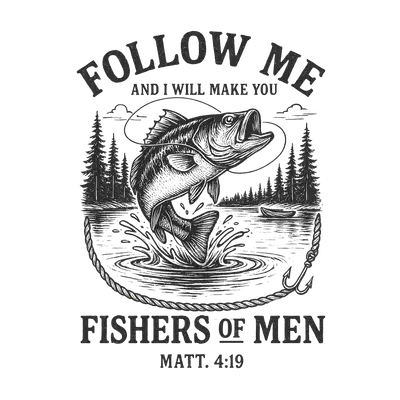 Fishers of Men Bass Fishing DTF Transfer | Matthew 4:19 Faith Design