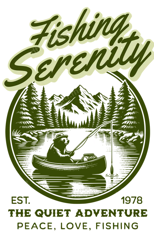 See allThis striking DTF transfer captures the essence of tranquility with its "Fishing Serenity" design. It features a charming bear in a canoe, calmly casting a line into a placid lake, framed by majestic mountains and lush pine trees. The vintage-inspired aesthetic, complete with "EST. 1978" and phrases like "THE QUIET ADVENTURE" and "PEACE, LOVE, FISHING," evokes a timeless love for the outdoors. This ready to press transfer is perfect for adding a touch of rustic charm to any garment or accessory. Ideal for avid anglers, outdoor enthusiasts, and anyone who cherishes the peaceful solitude of nature, this heat transfer makes a fantastic gift. Perfect for celebrating Fathers Day, birthdays, or as unique apparel for camping trips, fishing excursions, or lake house weekends. It’s also a great way to personalize gear for fishing clubs, family reunions, or simply to express your passion for the quiet adventure of fishing. Applying this high-quality iron on transfer is simple, whether you use a professional heat press or a household iron. For best results with a heat press, apply at 300-325°F for 15 seconds with medium pressure. It adheres flawlessly to a wide range of materials, including cotton, polyester, and their blends, making it a versatile iron on decal. Best of all, there’s no tedious weeding required, saving you time and effort. Experience superior quality with this durable and vibrant apparel transfer. Our professional DTF film ensures crisp details, vivid colors, and a soft, flexible feel that won't crack or peel, even after multiple washes. The strong adhesive provides long-lasting wear, transforming your chosen garment into a personalized masterpiece with ease.
