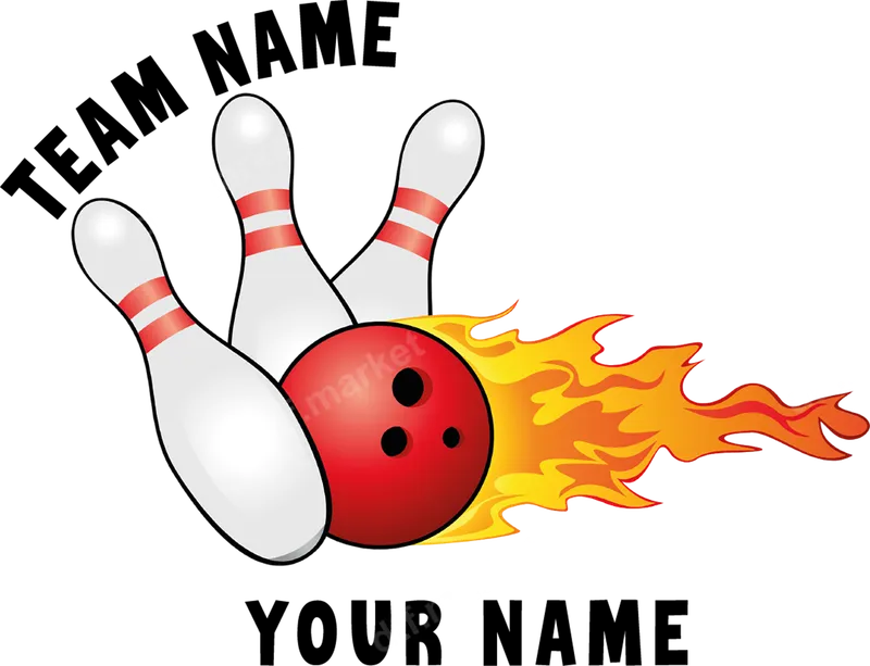 Flaming Bowling Ball & Pins DTF Transfer | Customizable Team & Player Name