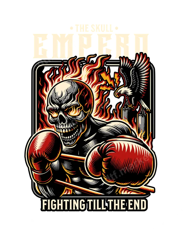Flaming Skull Boxer DTF Transfer | Emperor Eagle Design