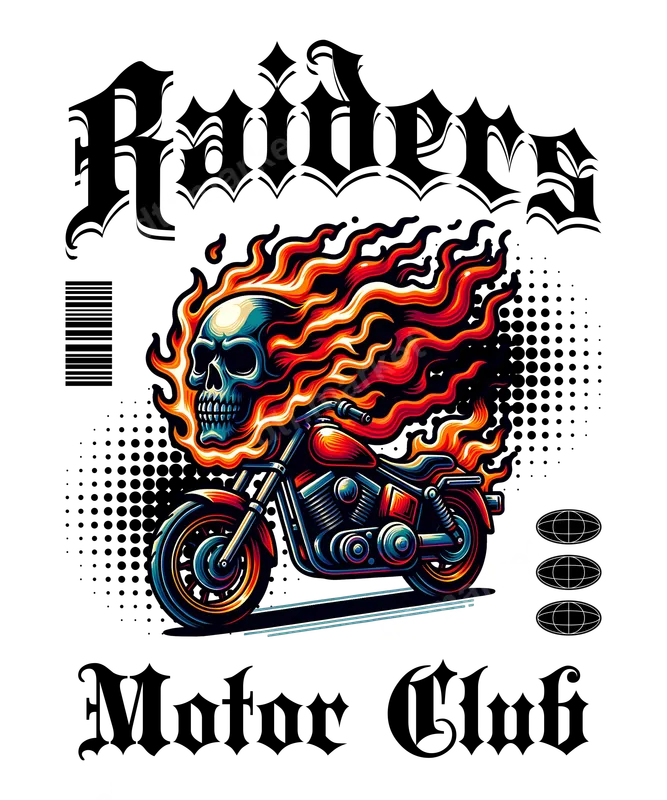 See allBlaze a trail with our dynamic Flaming Skull Motorcycle DTF Transfer, featuring a bold graphic of a skull engulfed in vibrant flames atop a classic chopper, flanked by "Raiders Motor Club" in gothic lettering. This eye-catching direct to film transfer is designed for maximum visual impact, capturing an edgy, high-energy aesthetic perfect for anyone who loves the open road or a fierce, custom look. It's a premium, ready to press heat transfer that will elevate any garment. This aggressive design is ideal for motorcycle enthusiasts, members of biker clubs, hot rod fans, and anyone with a love for skull art and street style. It makes an excellent gift for birthdays, Father's Day, or for customizing gear for rallies, meet-ups, or everyday wear. Create unique apparel for your crew or individual statement pieces that demand attention with this striking heat press design. Applying this high-quality iron on transfer is simple and requires no weeding. It works seamlessly on a wide range of materials, including cotton, polyester, and various fabric blends. For best results, use a heat press at 300-325°F for 15 seconds with medium pressure, then perform a cool peel. Alternatively, a household iron can be used following similar instructions, making it a versatile heat press ready solution for any custom project. Experience superior durability and vivid colors with our professional-grade DTF transfer. Crafted with strong adhesive, this apparel transfer resists cracking and fading, ensuring your custom shirt design looks fantastic wash after wash. The finished graphic boasts a soft, lightweight feel, providing a comfortable and long-lasting addition to your favorite garments.