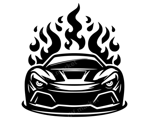 Flaming Sports Car DTF Transfer | Racing Hot Rod Design