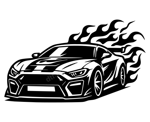 Flaming Sports Car DTF Transfer | Ready to Press Automotive Design