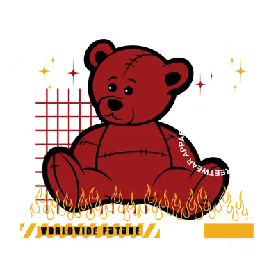 Flaming Teddy Bear Streetwear DTF Transfer | Worldwide Future Apparel