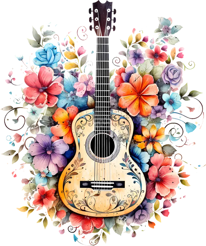 Floral Acoustic Guitar DTF Transfer | Watercolor Music Design