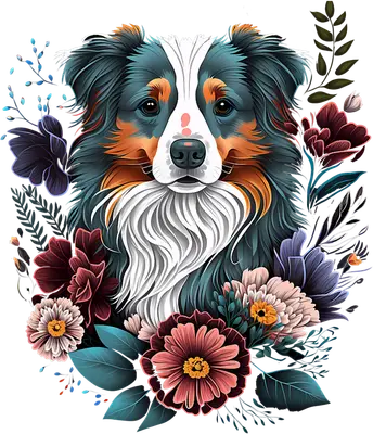 Floral Australian Shepherd DTF Transfer | Ready to Press Dog Design