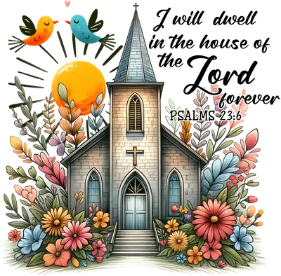 Floral Church Psalms 23:6 Faith DTF Transfer Bible Verse Design