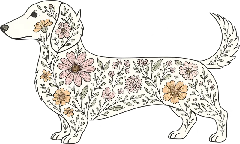 Floral Dachshund DTF Transfer | Ready to Press Dog Heat Transfer