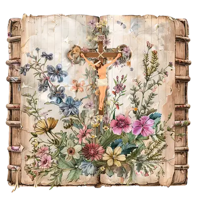 Floral Jesus Cross DTF Transfer - Vintage Bible & Wildflowers
