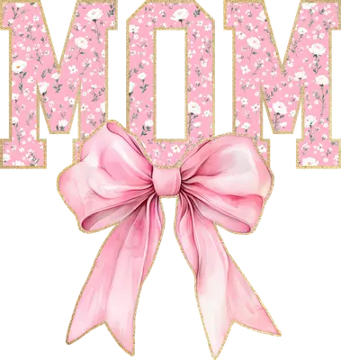 Floral Pink MOM with Glitter Bow DTF Transfer | Mother's Day Gift