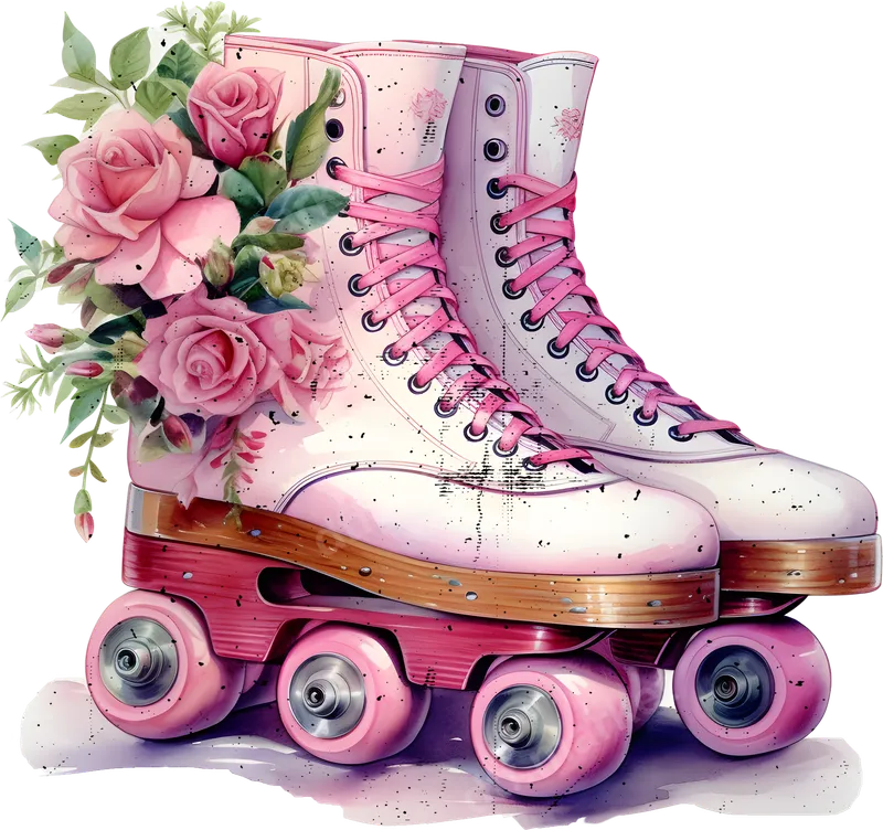 Floral Roller Skate DTF Transfer | Retro Pink Skates & Roses